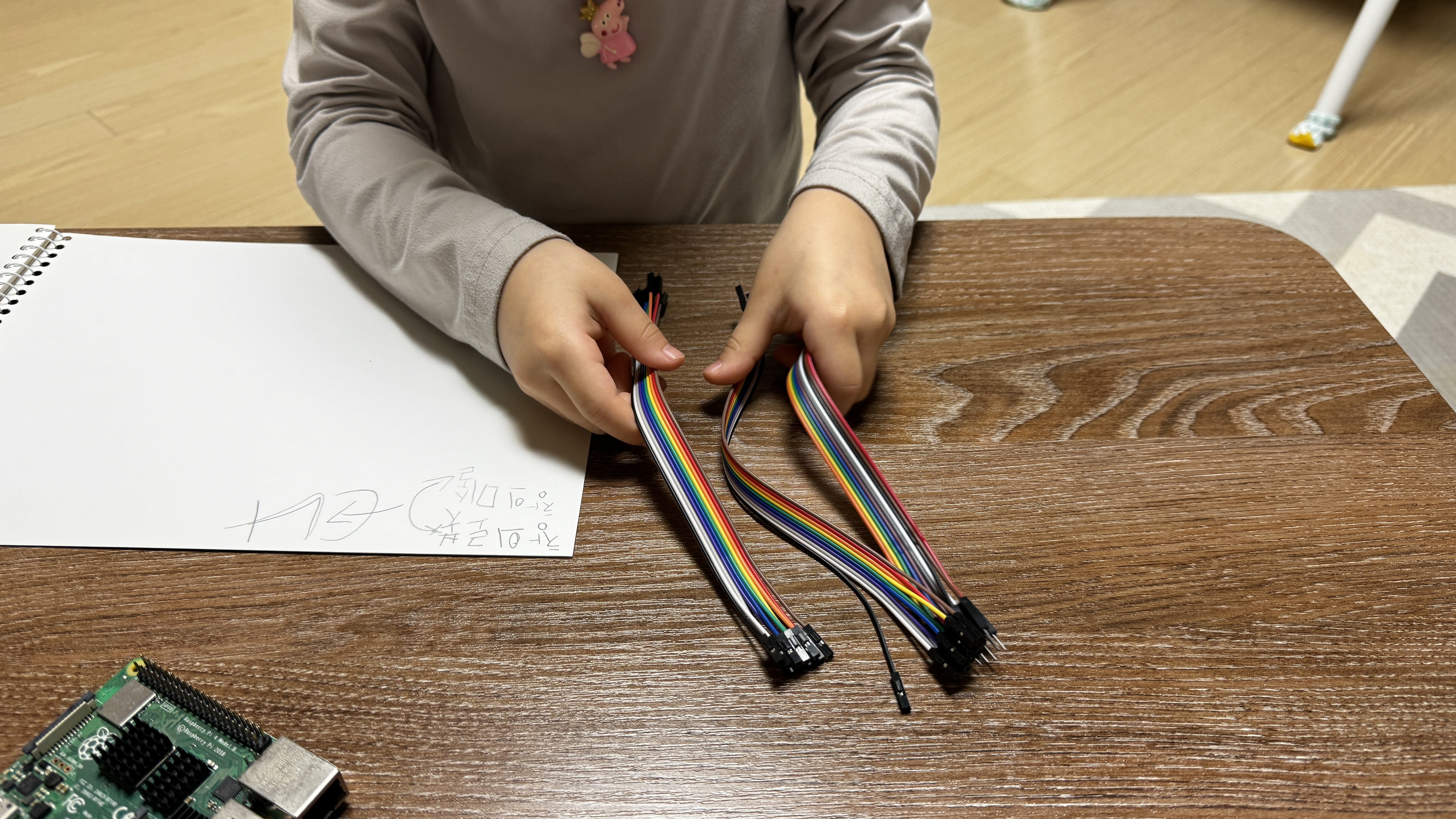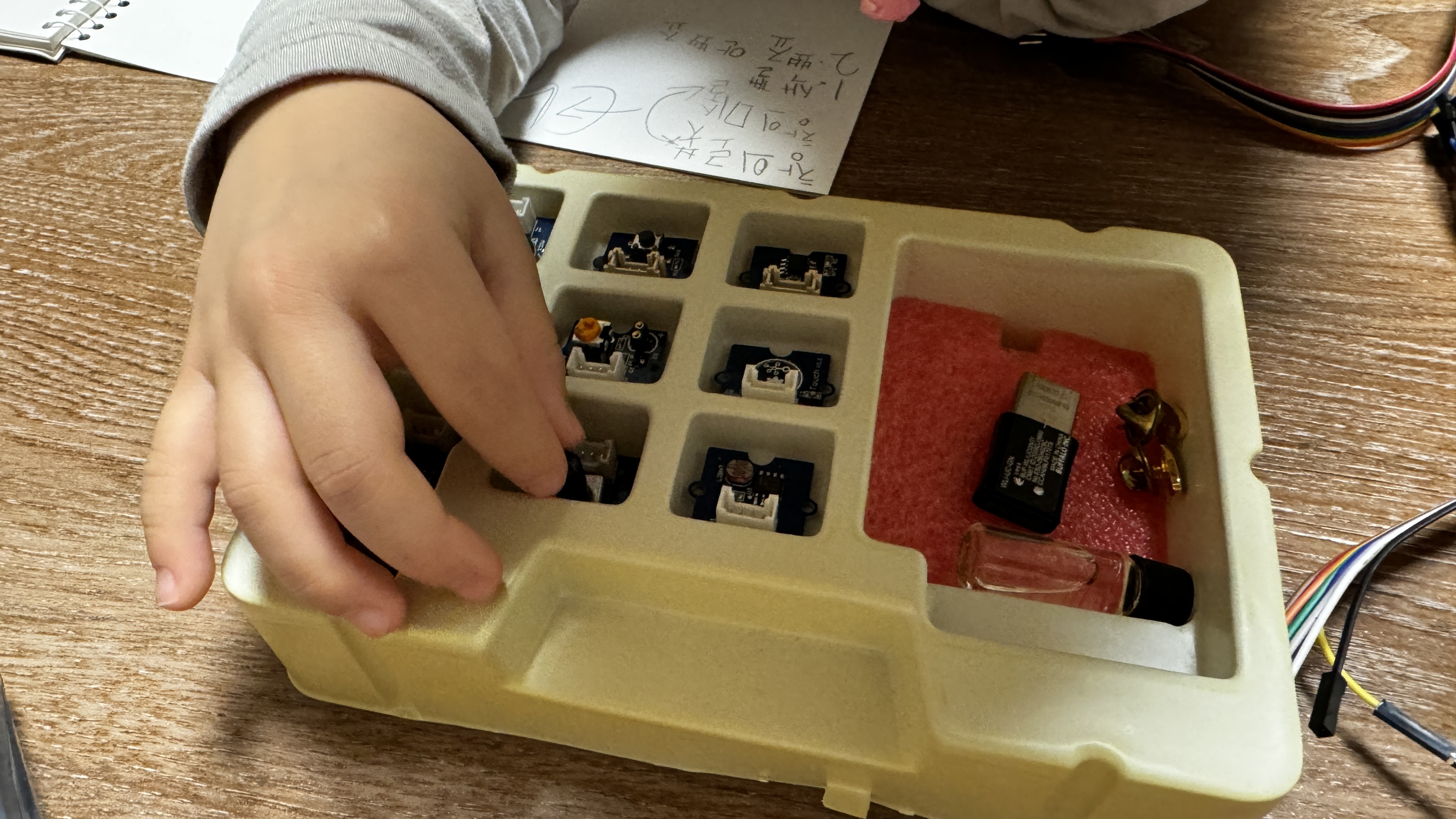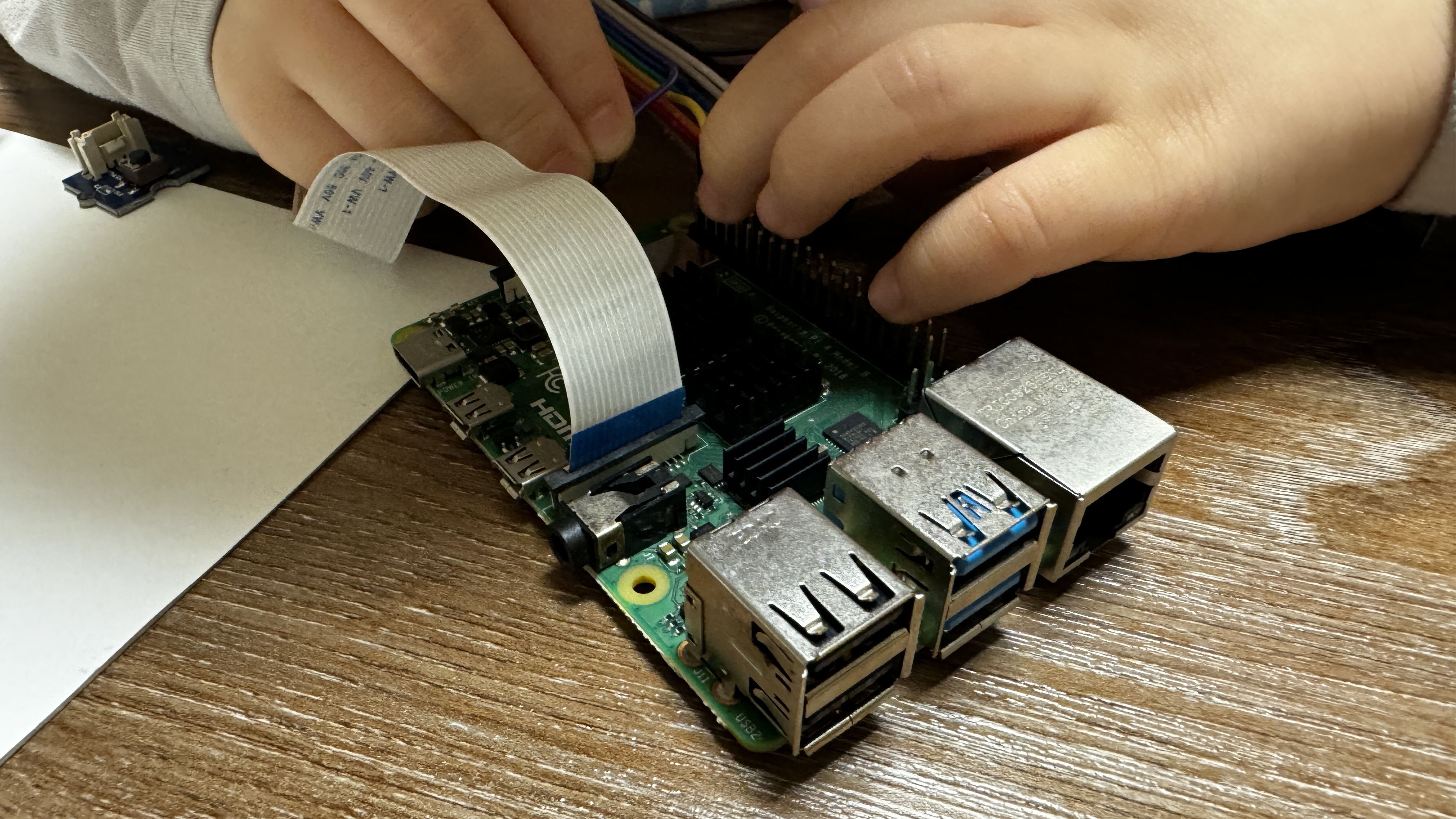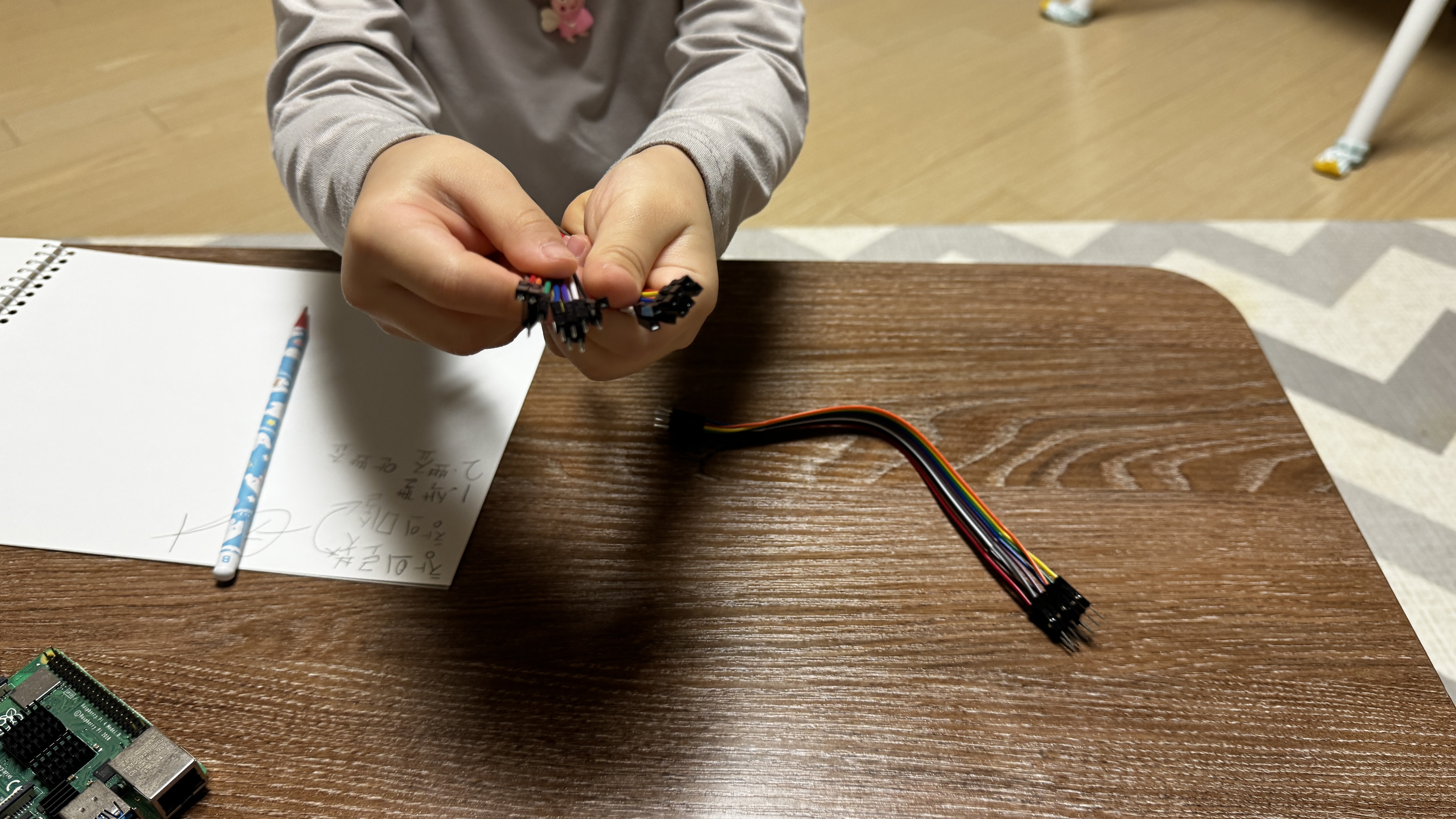 스스로 박스를 열어 Raspberry Pi 본체와 이것저것 부품들을 관찰하는 시간을 갖습니다.