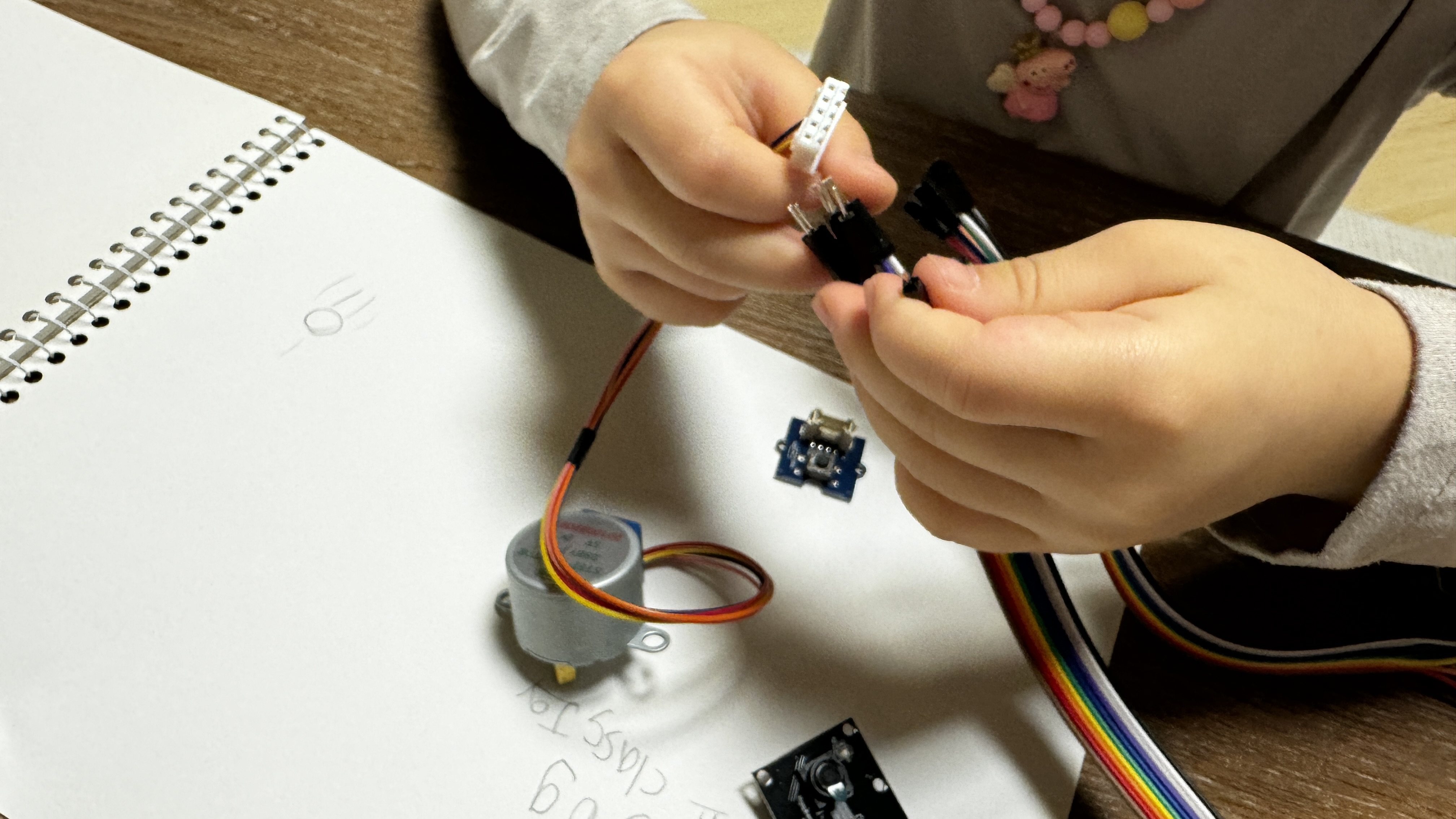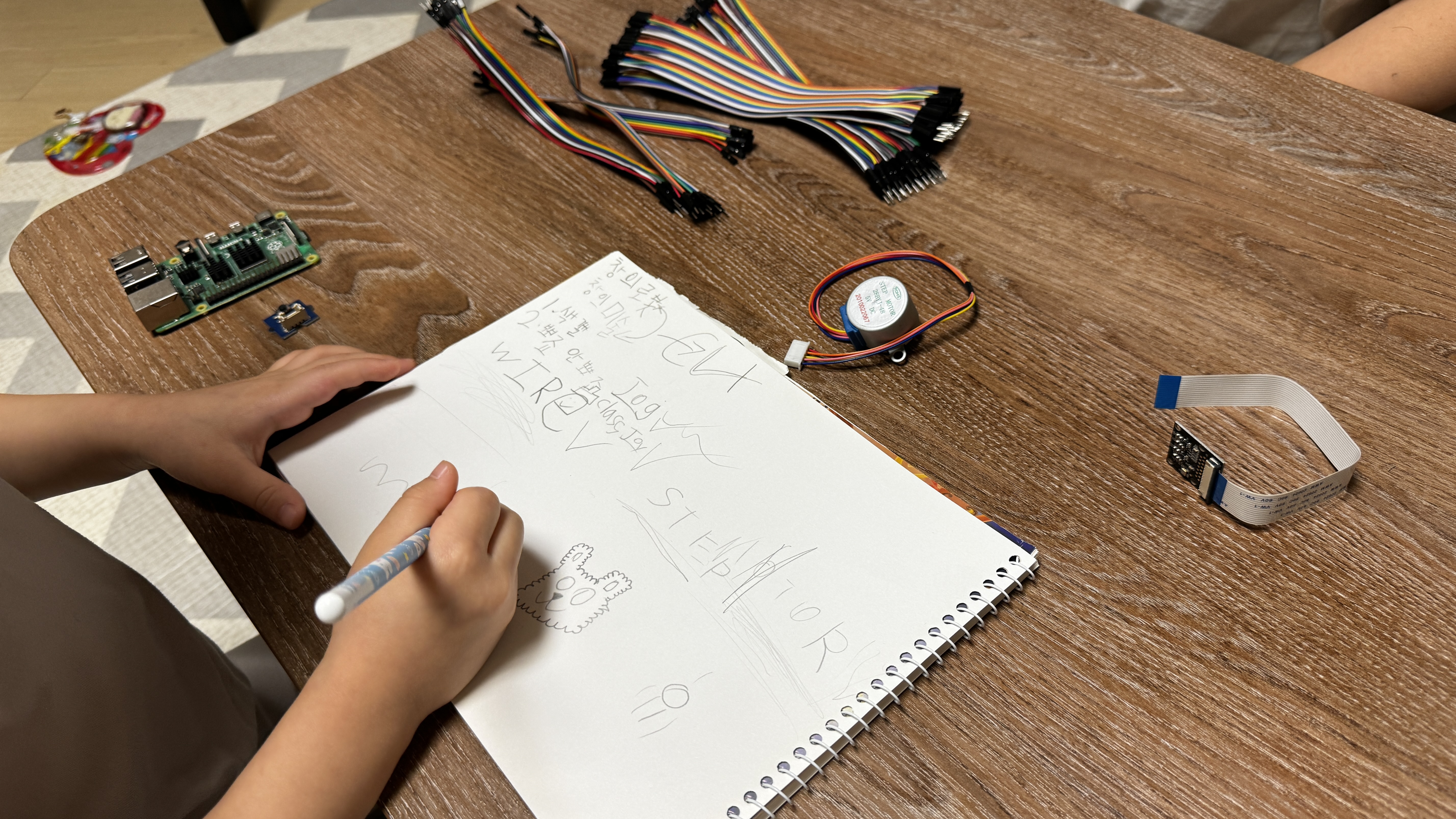 Wire를 이용해 'Jog dial' Module과 'Step Motor' Module을 Raspberry Pi에 연결해봅니다.
