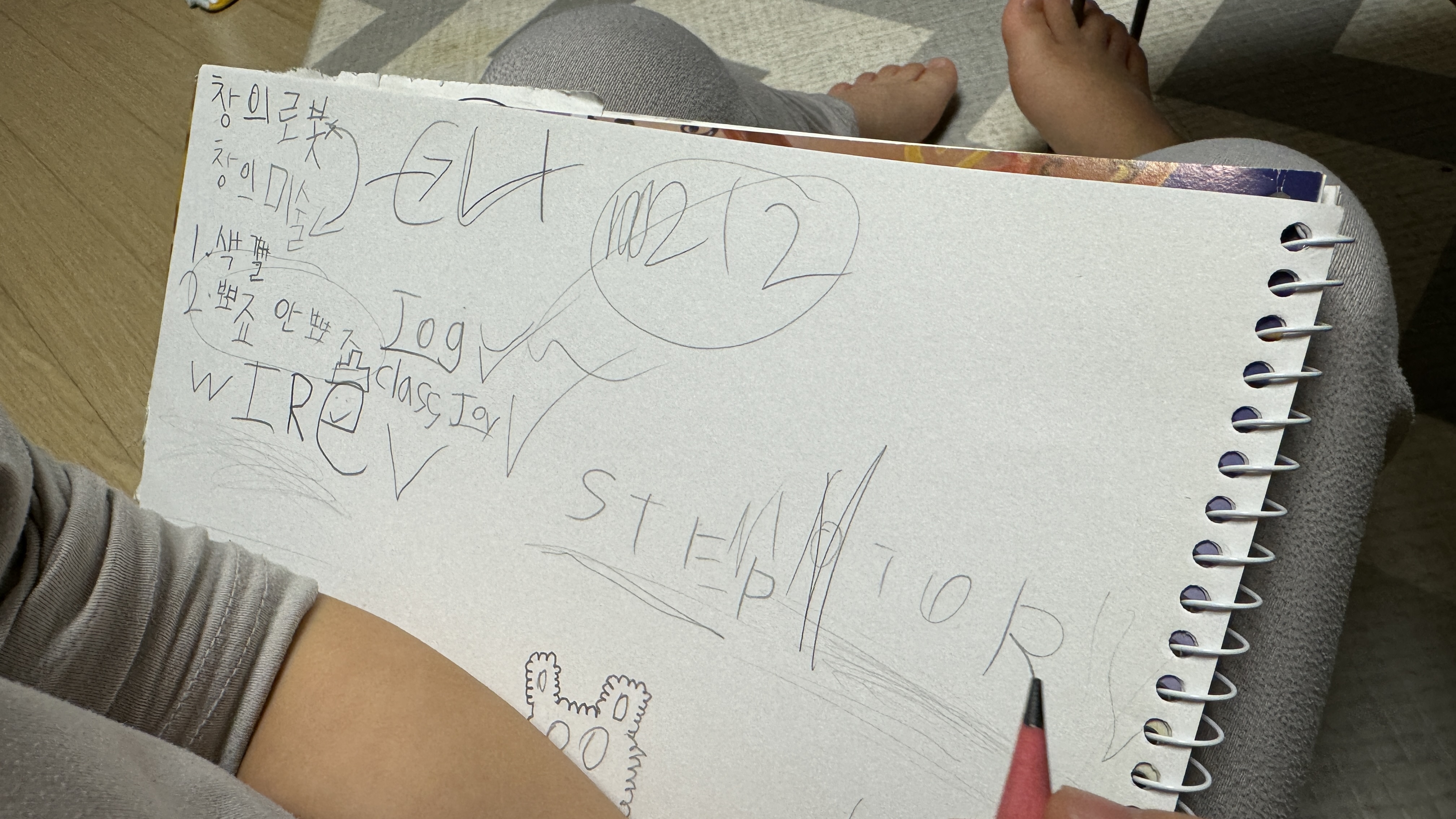 지금껏 기록한 연습장을 이용해 엄마에게 지금까지 배운 내용을 처음부터 설명해봅니다.