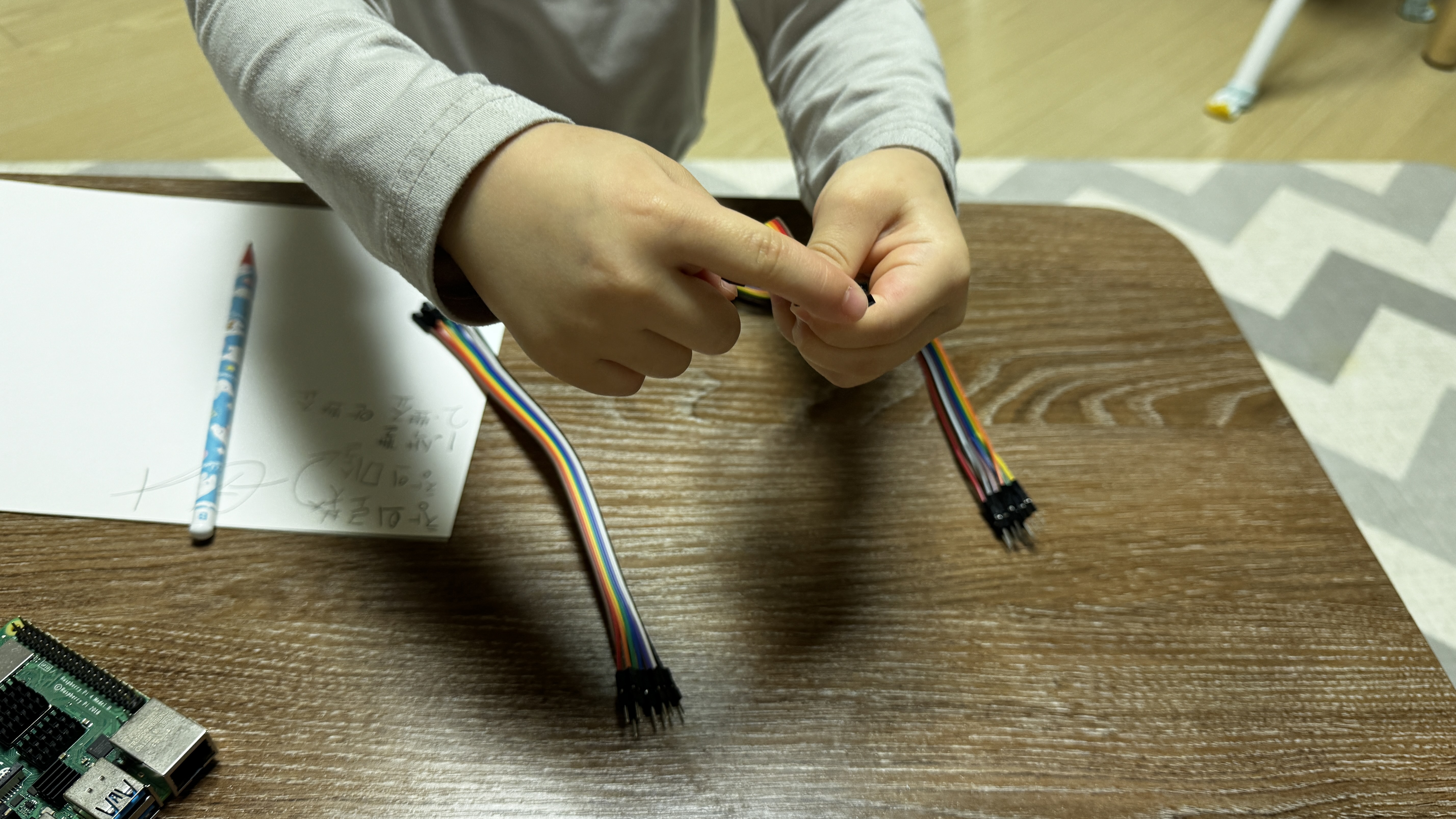 Raspberry Pi에 연결하는 방법을 설명하고 직접 연결해보도록 시간을 줍니다.