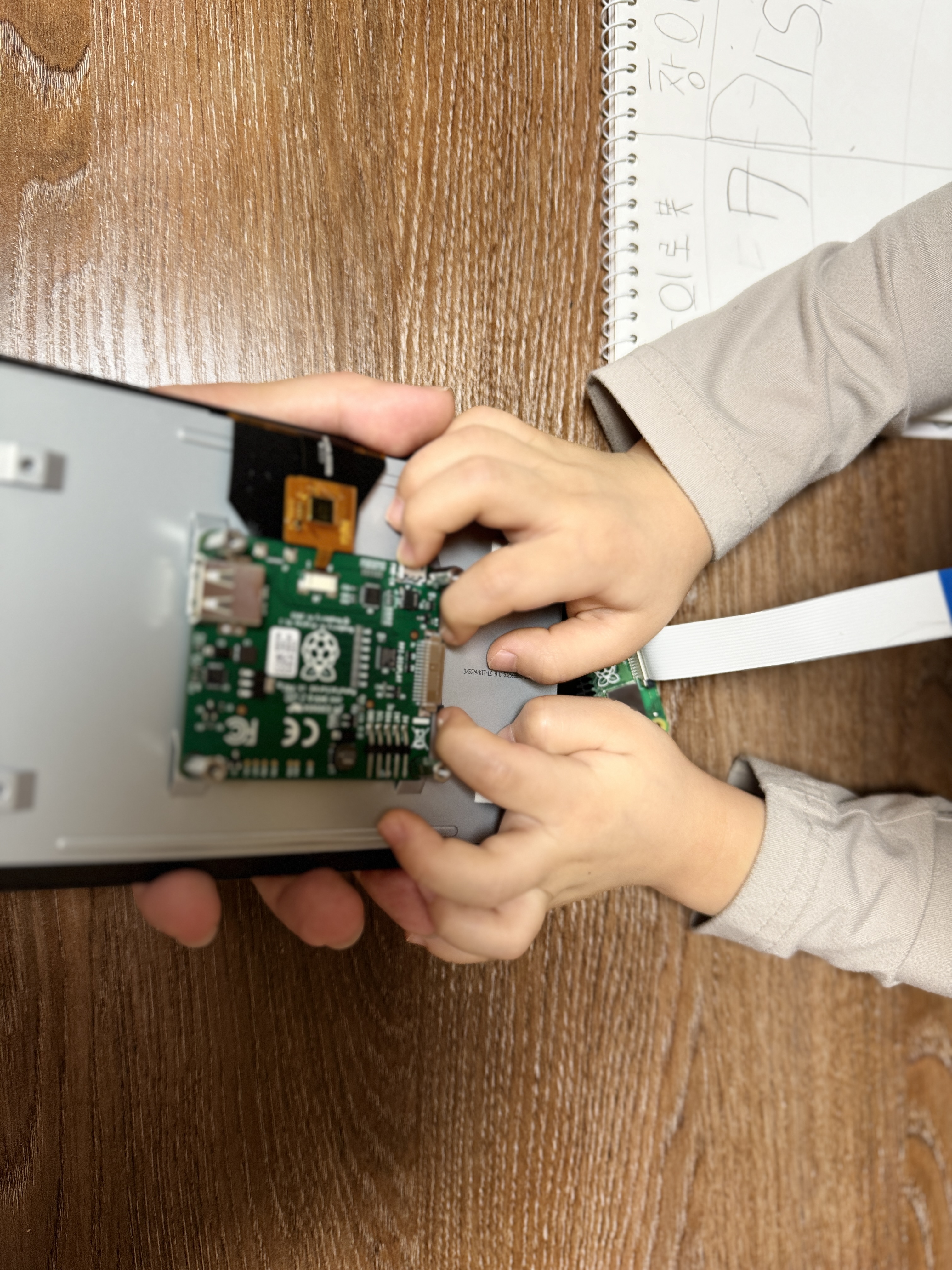 Display Basel이 깨지기 쉬우니 잡아주되 모든 조립은 스스로 할 수 있도록 합니다.